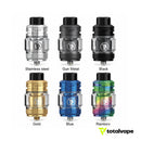 The Zeus uses a unique top-to-bottom airflow allowing massive flavor and vapor production to be made. This system also helps prevent leaking from over-wicking and condensation build up. The Zeus vape tank also uses GeekVape's Z Series Replacement coils which feature kanthal mesh coils and organic cotton. The mesh coils have a larger heating surface and heats evenly for maximum efficiency. GeekVape offers two atomizer heads to choose from; Mesh Z1 which features a 0.4 ohm mesh coil and is best used at 60 to 70 watts, and the Mesh Z2 which has a 0.2 ohm mesh coil and should be used between 70 and 80 watts. The Zeus Sub-Ohm Tank includes a pre-installed Z2 Single Mesh coil and a Z1 Mesh coil, giving users the ability to test both out for themselves.