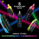 OXBAR Gturbo is the world's first reusable vape with five nicotine levels. It has a 900mAh battery with Type-C fast charging, and it can last for over 36,000 puffs. You can control the nicotine strength with a side button, and the five-colour breathing lights let you know which level the device is on. With 22ml of e-liquid and UNIONE triple mesh coils, the OXBAR Gturbo gives you an incredibly flavourful vaping experience. It also has Eco and Boost modes to suit different preferences. Plus, a large 3D screen displays battery life, e-liquid level, and nicotine strength. The OXBAR Gturbo rechargeable vape is designed to offer unmatched performance and convenience.